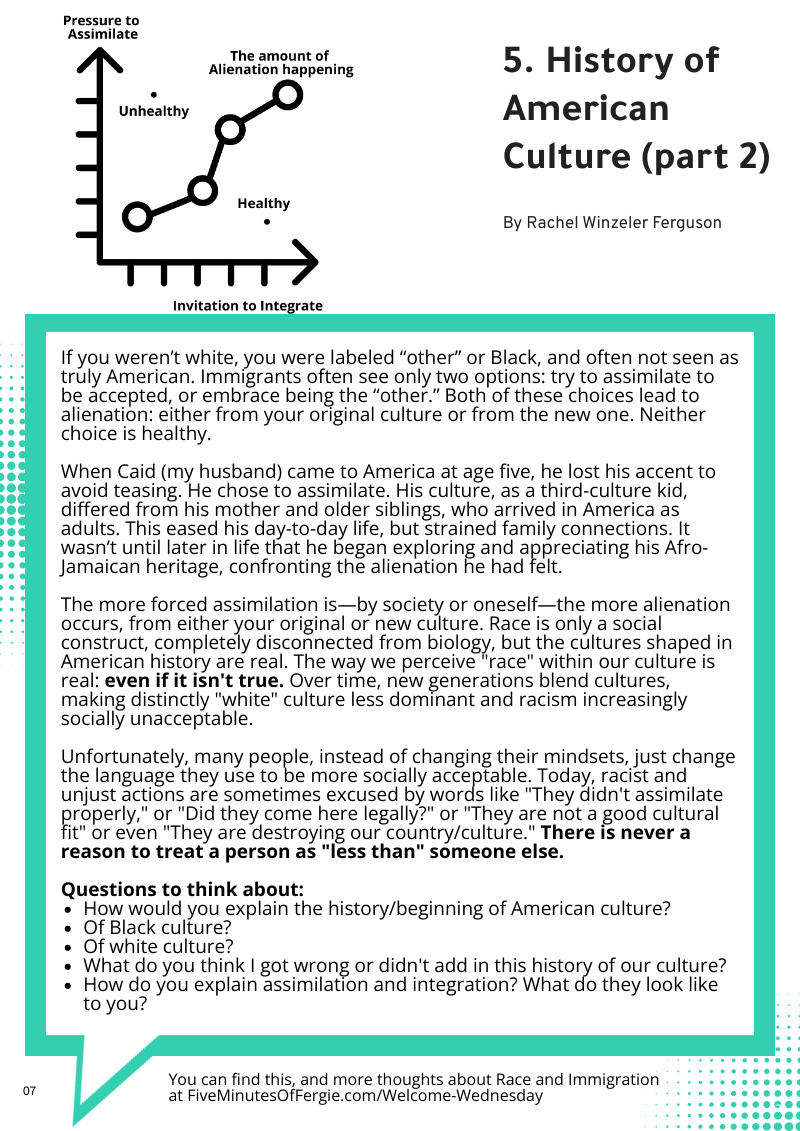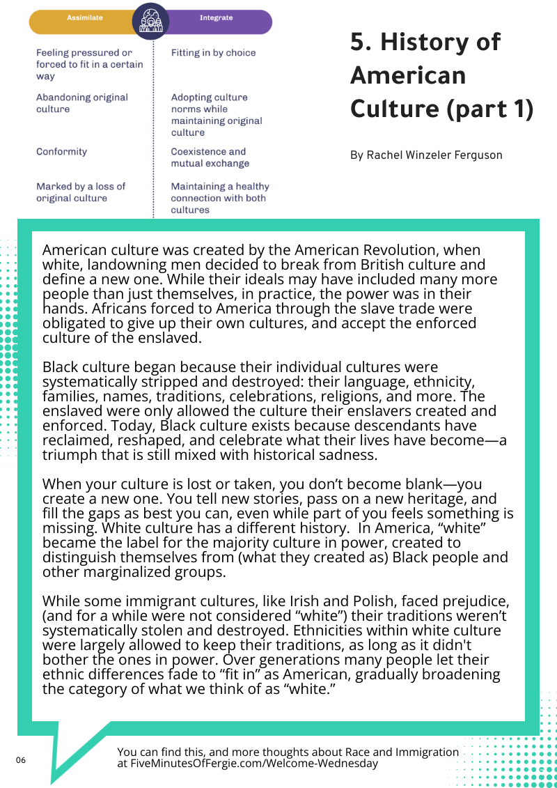 History of American Culture (part 5) Apr 7 Written By Rachel Ferguson You can download the whole 7 parts here. Rachel Ferguson