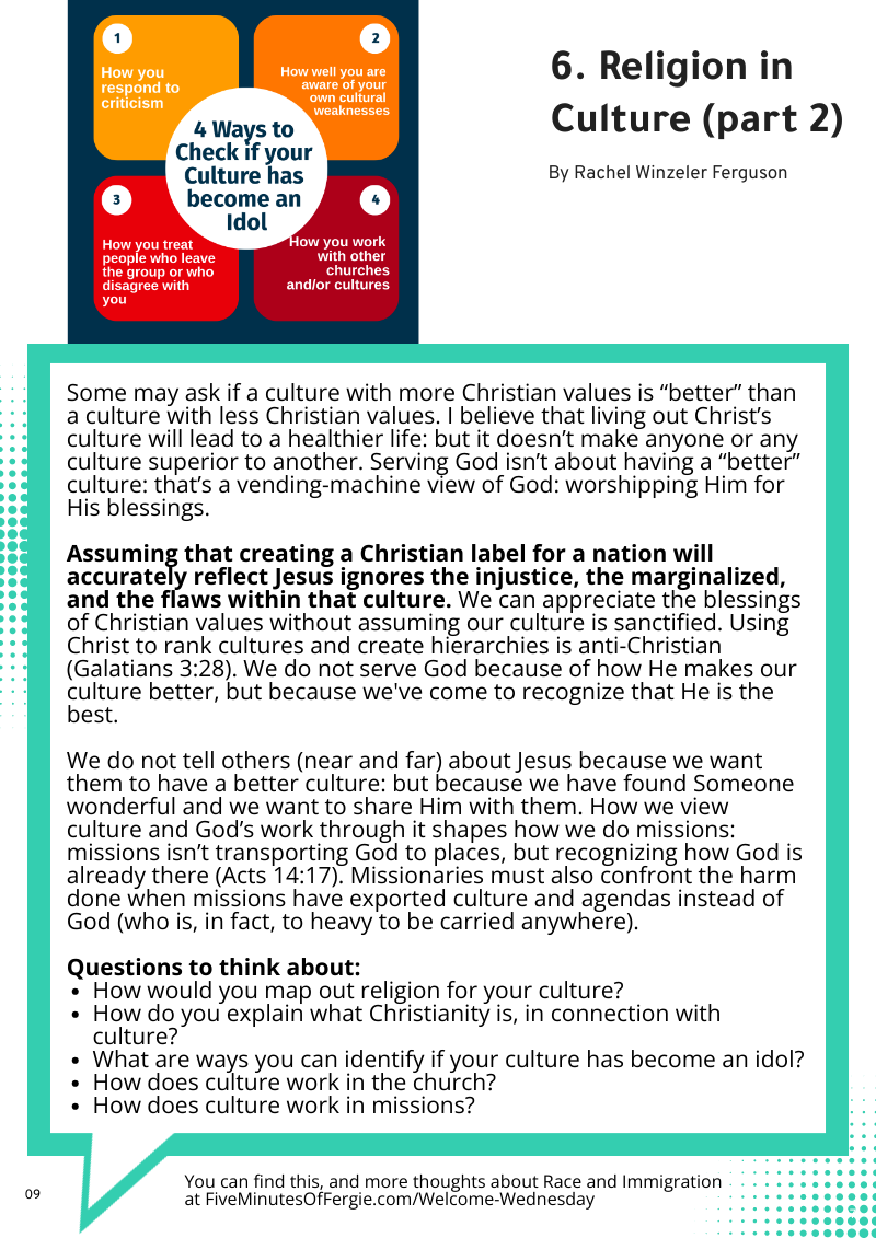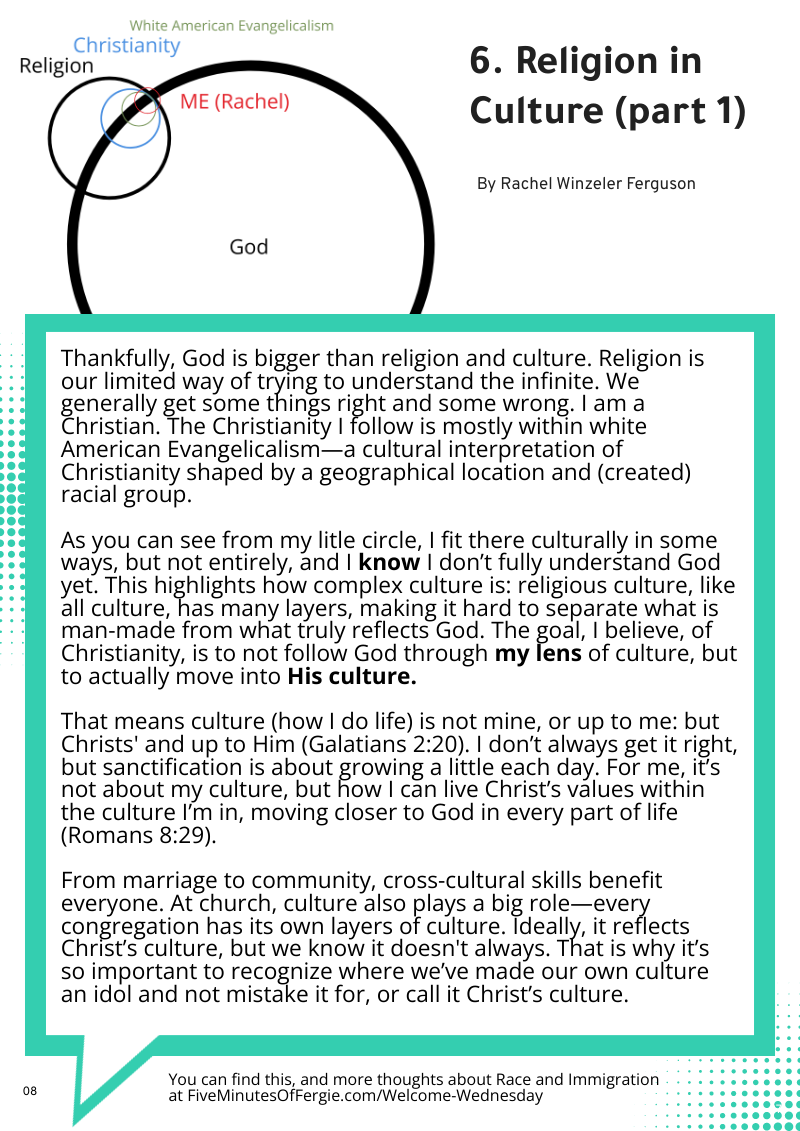 Religion in Culture (part 6) Apr 7 Written By Rachel Ferguson You can download all 7 parts here. Rachel Ferguson