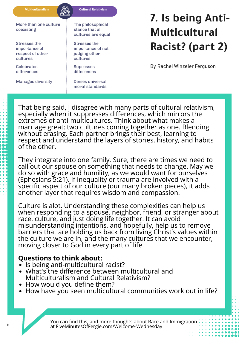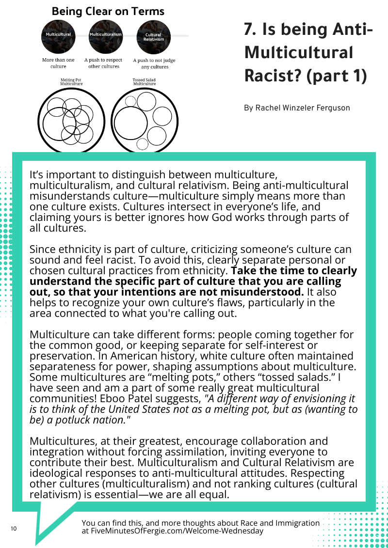 Is Being Anti-Multicultural Racist? (part 7) Apr 7 Written By Rachel Ferguson You can download all 7 parts here. Rachel Ferguson