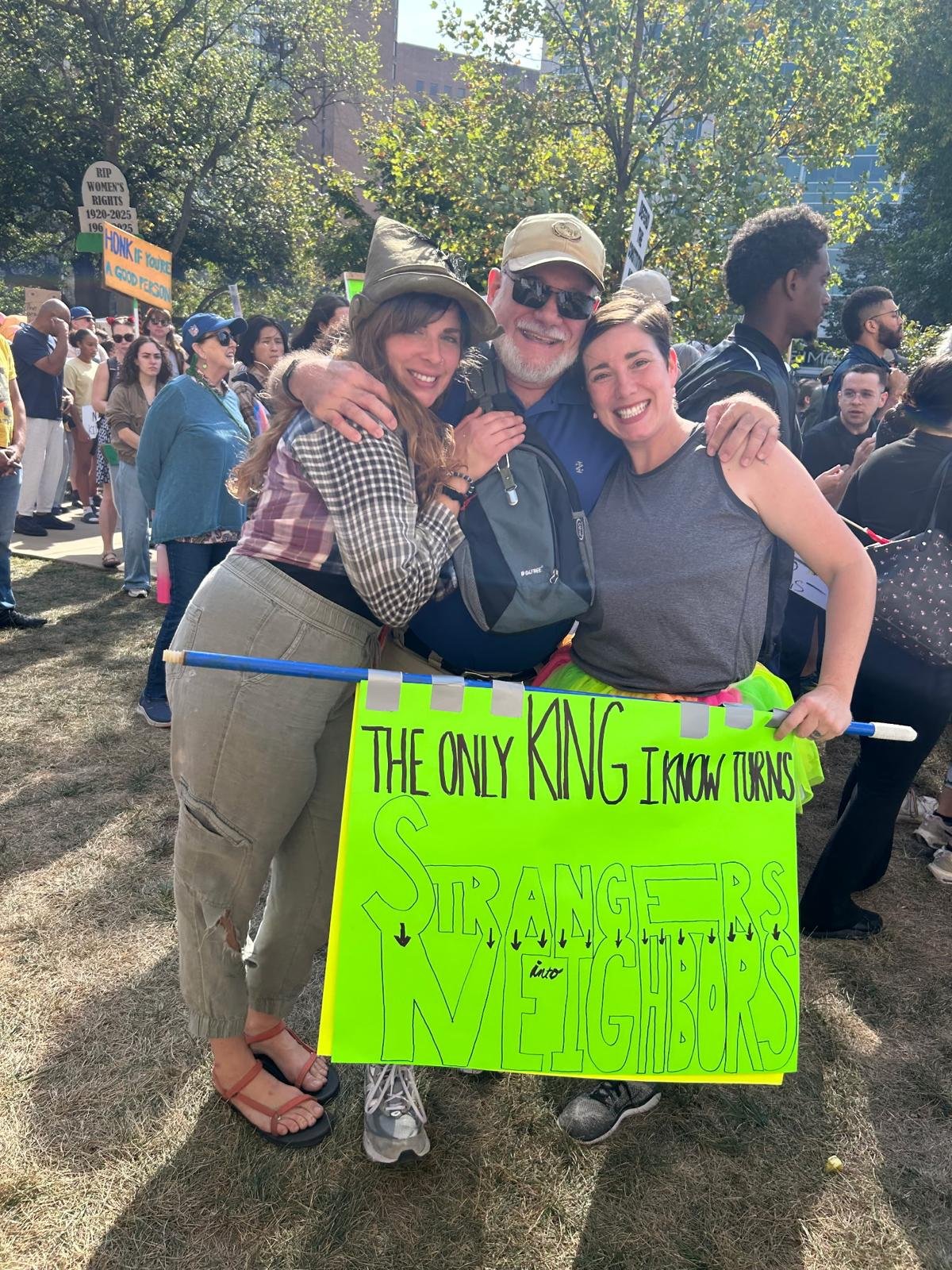 There was a different feel to the protest in October 2025. First of all, it was a beautiful fall day, which did wonders for my outlook on life. Next, it was set up more like a street fest, with booths where you could get information and see that people cared and were actually doing something positive in their communities, rather than gripe about the bad things/people in government. Also, every. Single. Speaker was respectful and kind, framing their words into positive action rather than ranting rage. I could clap and cheer for what they were saying with a clear conscience. When we sang the national anthem, I had tears in my eyes, and I was proud to be an American. We thanked all of the police officers there, for protecting the peace. And when I ran into someone I knew, it was a lot of joy.